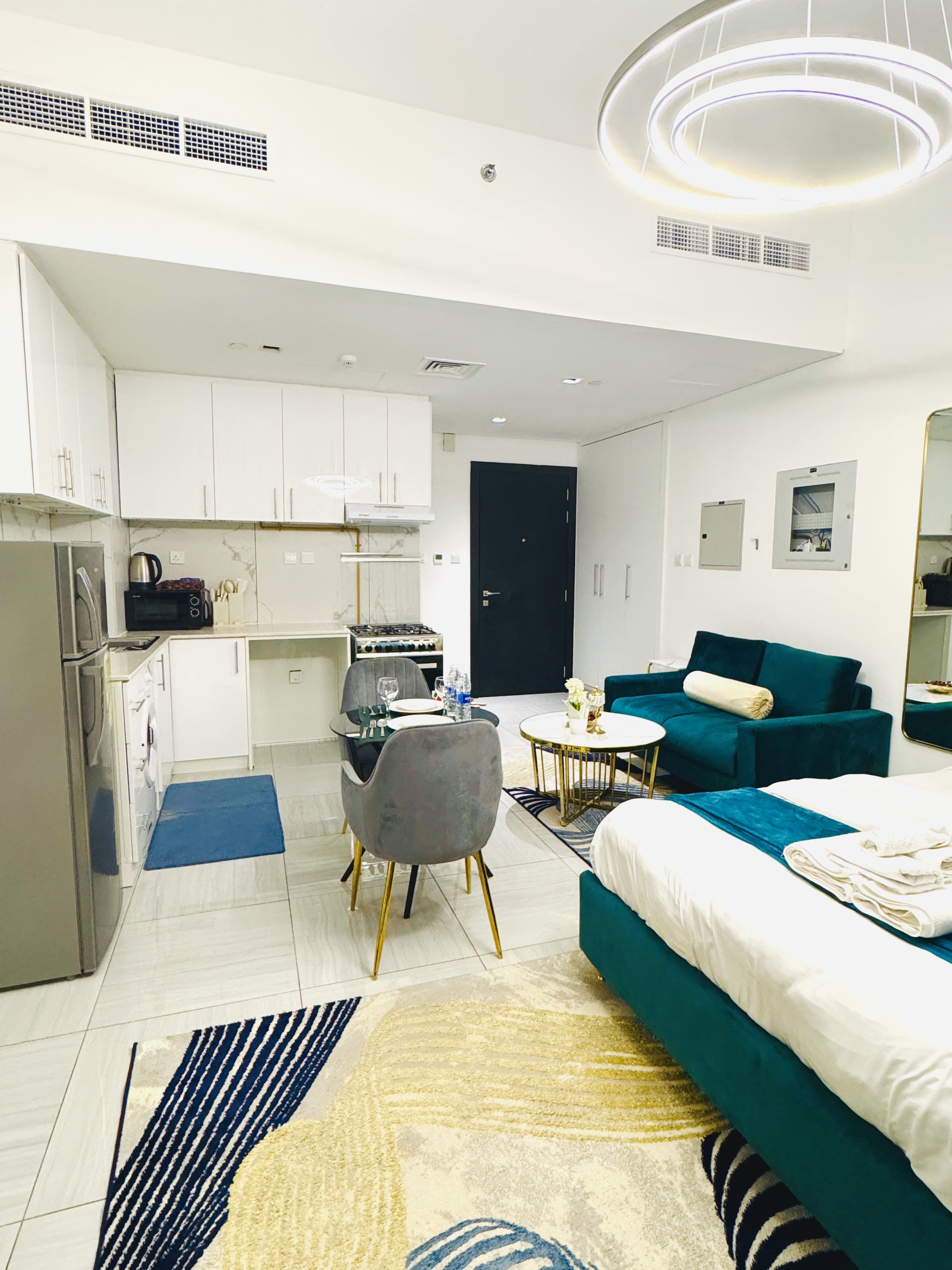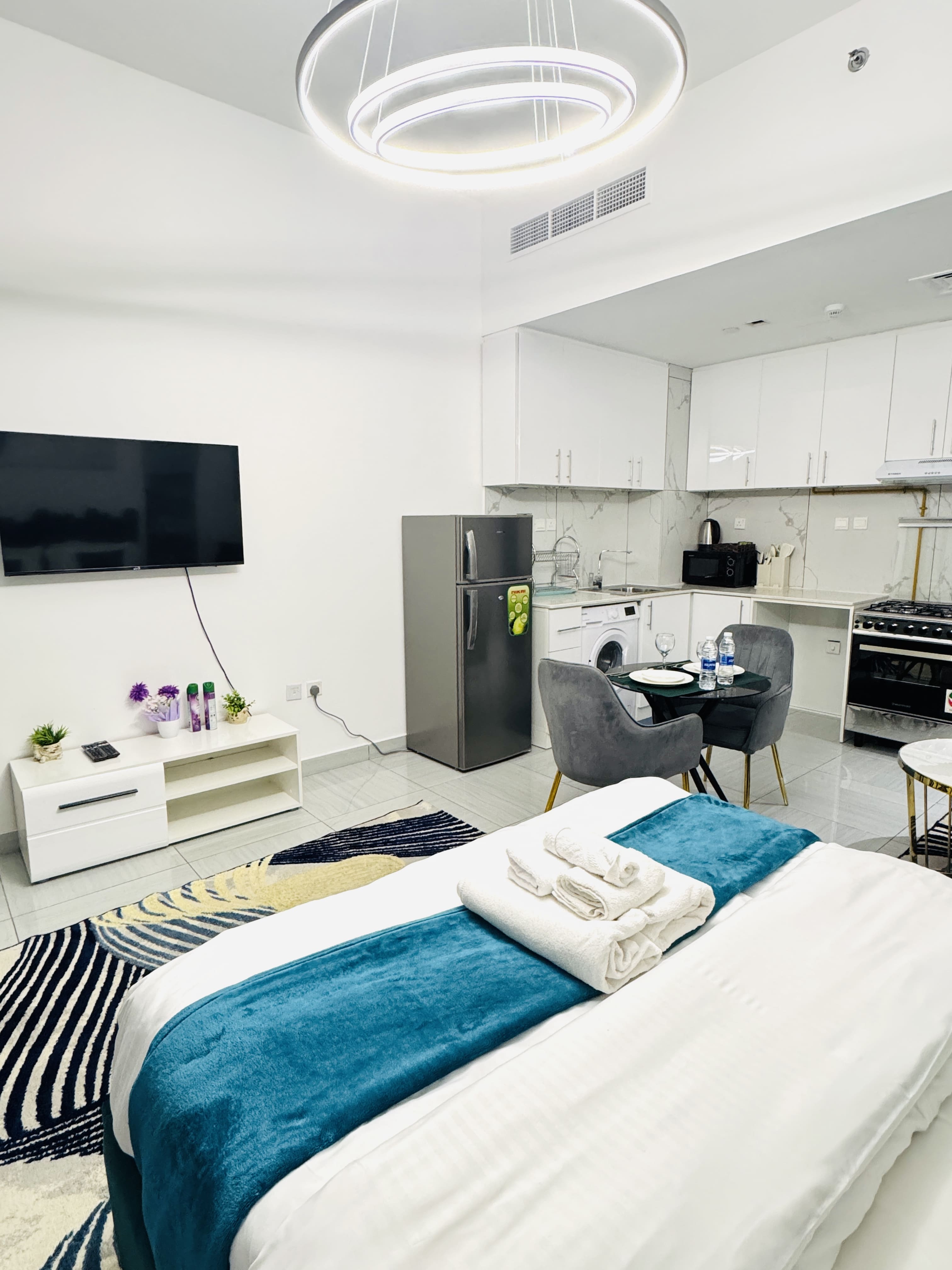 **Other Details to Note:** - **Location:** Our studio apartment is located in the heart of JVC, a vibrant and peaceful community offering easy access to major attractions in Dubai, such as Mall of the Emirates, Dubai Marina, and JBR Beach. It's a perfect spot for both short-term and long-term stays. - **Parking:** Free parking is available on-site. You’ll have a dedicated parking spot, so no worries about finding a place to park. - **Public Transport:** The apartment is well-connected with public transportation. The JVC area is serviced by bus routes, and the nearest metro station (Dubai Internet City) is just a short drive away, making it easy to explore the city. - **Building Amenities:** The building features a swimming pool, a well-equipped gym, and 24/7 security for your safety and convenience. - **WiFi & Entertainment:** High-speed WiFi is provided, along with a smart TV equipped with streaming services for your entertainment. - **Air Conditioning:** The apartment is fully air-conditioned to keep you comfortable, no matter the weather outside. - **Quiet Hours:** Please be mindful of noise after 10 PM, as JVC is a residential neighborhood, and we want to respect all neighbors. - **Check-In/Check-Out:** Standard check-in time is after 3 PM, and check-out is by 11 AM. Early check-in or late check-out can be arranged based on availability, but please confirm with us in advance. - **Safety:** The apartment is fully equipped with smoke detectors, a first-aid kit, and a fire extinguisher for your peace of mind. - **House Rules:** No parties, pets, or smoking are allowed inside the apartment. Kindly respect the property and neighbors during your stay.