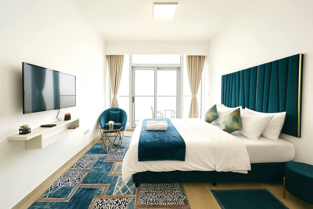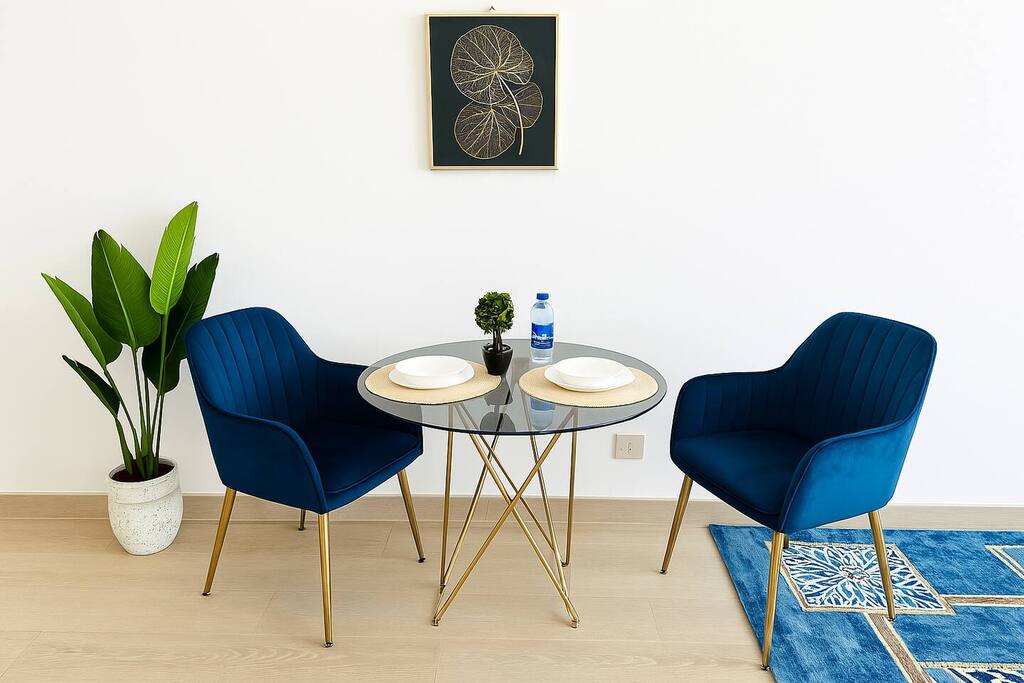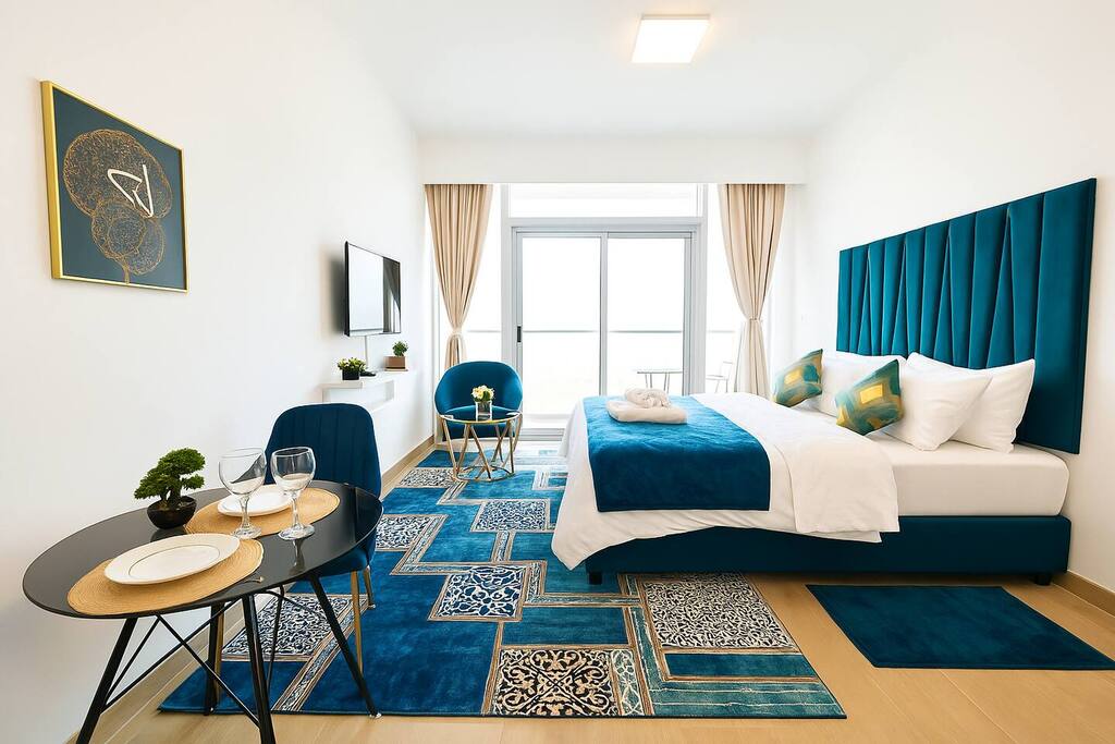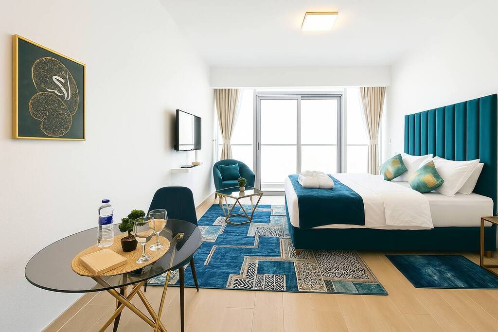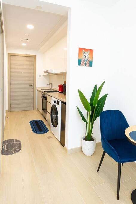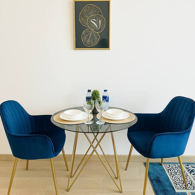 **Other Details to Note:** - **Location:** Our studio apartment is located in the heart of JVC, a vibrant and peaceful community offering easy access to major attractions in Dubai, such as Mall of the Emirates, Dubai Marina, and JBR Beach. It's a perfect spot for both short-term and long-term stays. - **Parking:** Free parking is available on-site. You’ll have a dedicated parking spot, so no worries about finding a place to park. - **Public Transport:** The apartment is well-connected with public transportation. The JVC area is serviced by bus routes, and the nearest metro station (Dubai Internet City) is just a short drive away, making it easy to explore the city. - **Building Amenities:** The building features a swimming pool, a well-equipped gym, and 24/7 security for your safety and convenience. - **WiFi & Entertainment:** High-speed WiFi is provided, along with a smart TV equipped with streaming services for your entertainment. - **Air Conditioning:** The apartment is fully air-conditioned to keep you comfortable, no matter the weather outside. - **Quiet Hours:** Please be mindful of noise after 10 PM, as JVC is a residential neighborhood, and we want to respect all neighbors. - **Check-In/Check-Out:** Standard check-in time is after 3 PM, and check-out is by 11 AM. Early check-in or late check-out can be arranged based on availability, but please confirm with us in advance. - **Safety:** The apartment is fully equipped with smoke detectors, a first-aid kit, and a fire extinguisher for your peace of mind. - **House Rules:** No parties, pets, or smoking are allowed inside the apartment. Kindly respect the property and neighbors during your stay.