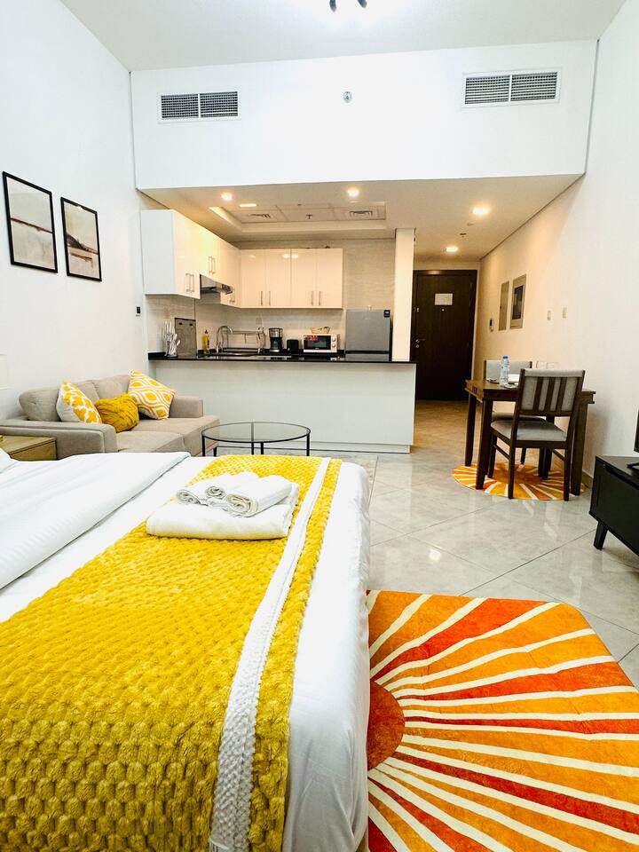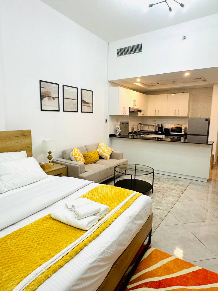 Welcome to your modern and stylish stay in Chaimaa Premiere, a premium residential building located in the heart of Jumeirah Village Circle (JVC). This apartment is fully furnished and thoughtfully designed to offer a relaxing and comfortable experience — perfect for both short and long stays. You’ll enjoy a bright, open-plan living space with a fully equipped kitchen, cozy sleeping area, and a private balcony to unwind. Fast Wi-Fi, smart TV, and all essential amenities are provided to make you feel right at home. The building features top-class facilities including: Swimming pool Well-equipped gym Children’s play area 24/7 security & reception Free covered parking Conveniently located near Circle Mall, supermarkets, cafes, and parks — this is an ideal base for discovering Dubai while staying in a calm and secure residential environment. ⚠️ Disclaimer This property is professionally managed by Malinstay Homes Rental LLC, fully licensed under the Dubai Department of Tourism and Commerce Marketing (DTCM). As per DTCM and community regulations, all guests are required to submit a valid Emirates ID or passport copy before check-in. The details will be securely shared only with the DTCM portal and building management for registration and access approval in accordance with UAE laws. Guests are requested to inspect all furniture and amenities upon arrival. Any damages, defects, or maintenance issues should be reported immediately to our team. Failure to report issues at check-in may be considered as acceptance of the property’s condition. Repairs or replacements will be arranged promptly where required. Please note that the property is located in a residential community. Guests are expected to respect neighbors, follow building rules, and comply with all UAE regulations during their stay. Malinstay Homes Rental LLC will not be liable for personal belongings, accidents, or external factors such as building maintenance or community noise beyond our control. We aim to ensure a comfortable and enjoyable experience for all our guests — your cooperation is greatly appreciated.