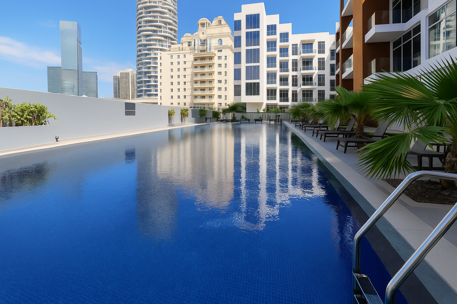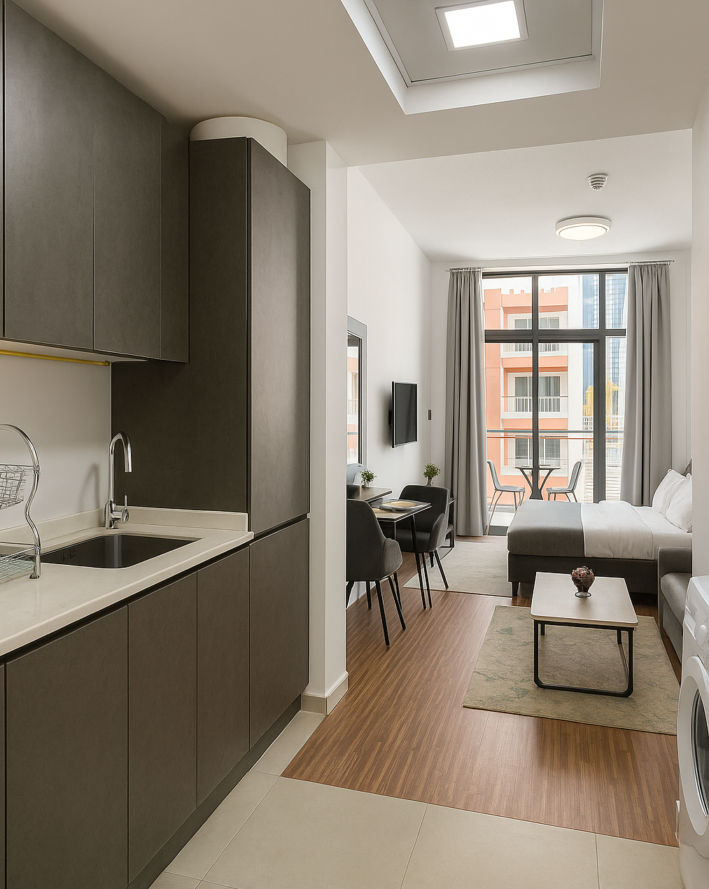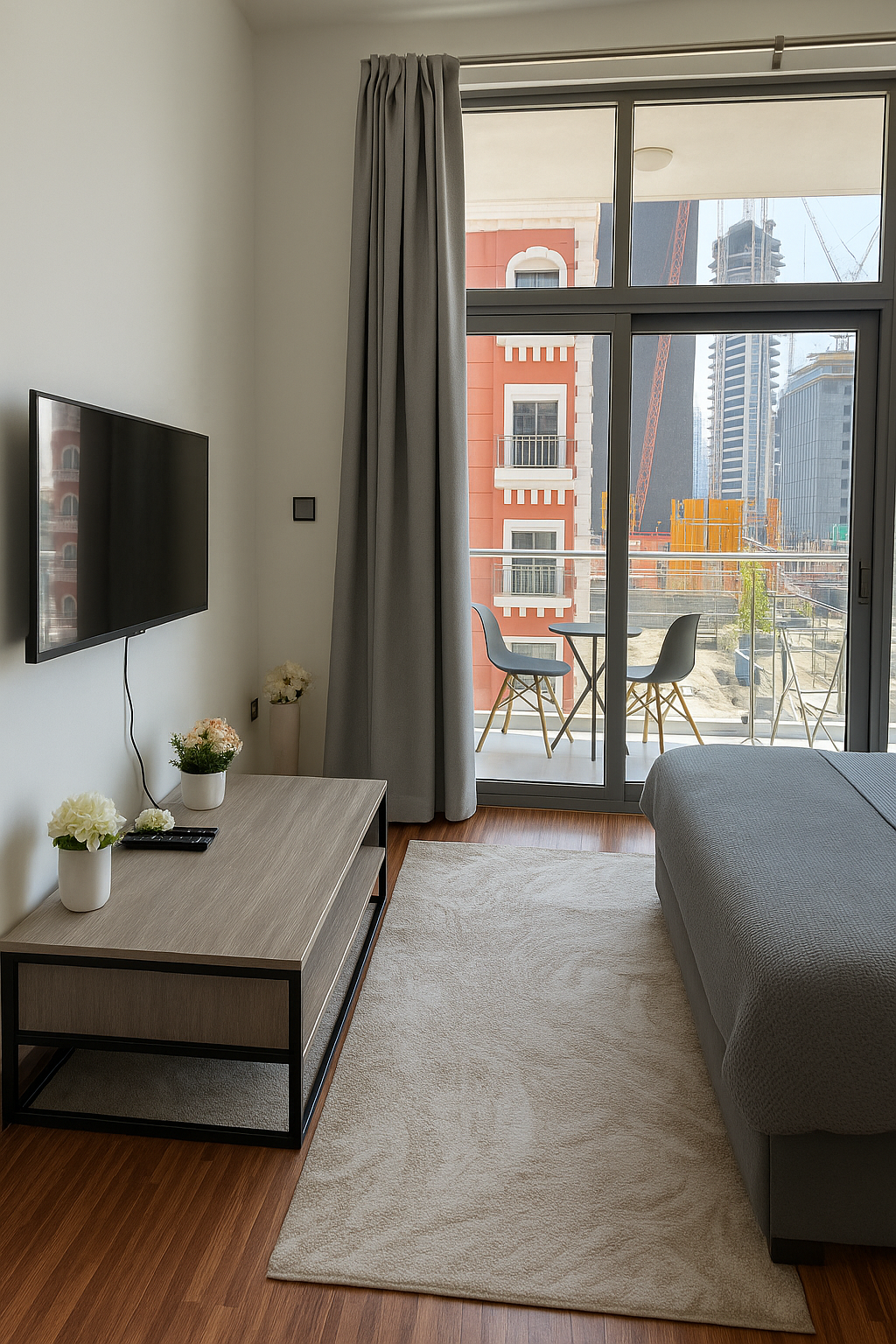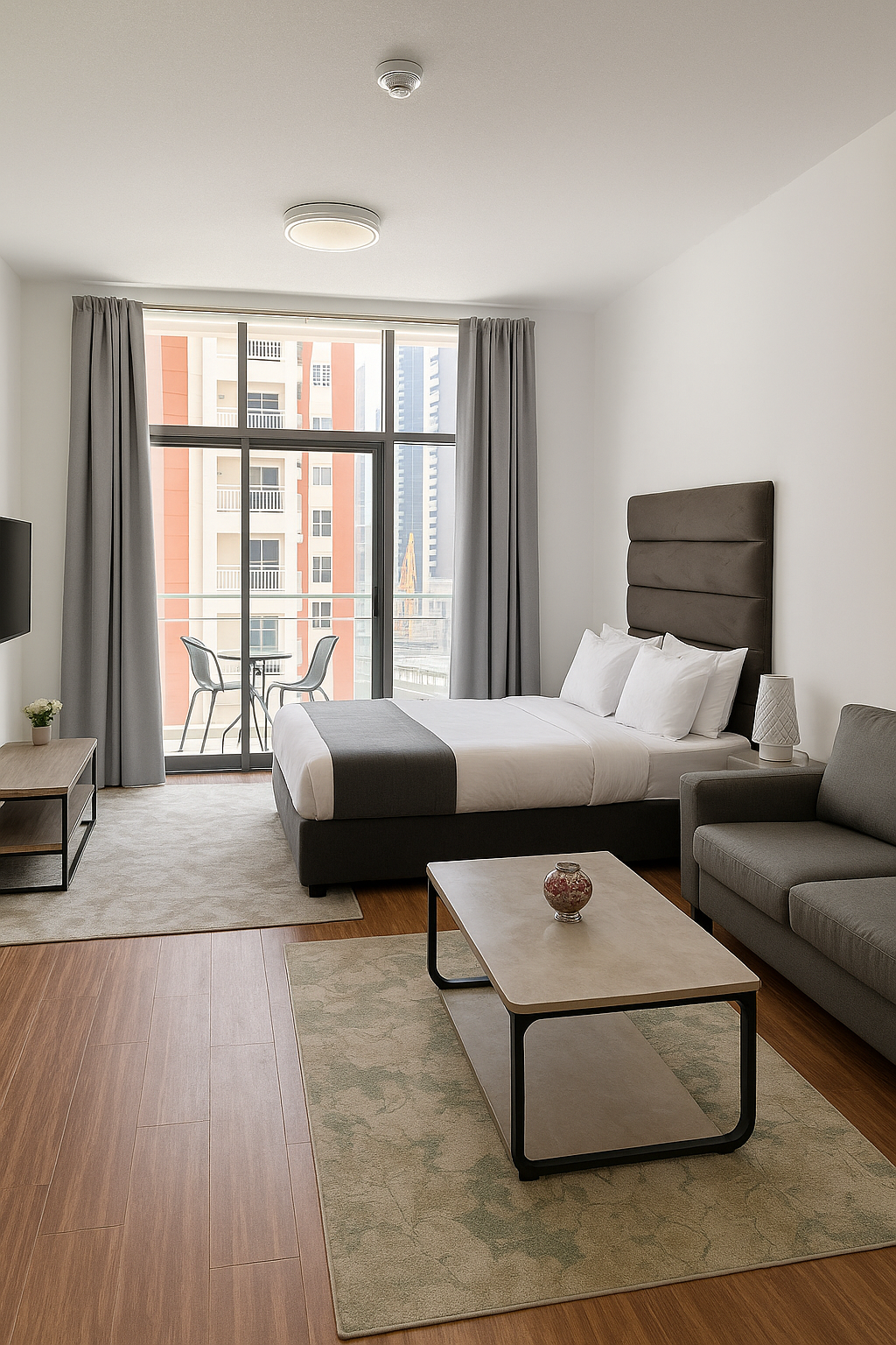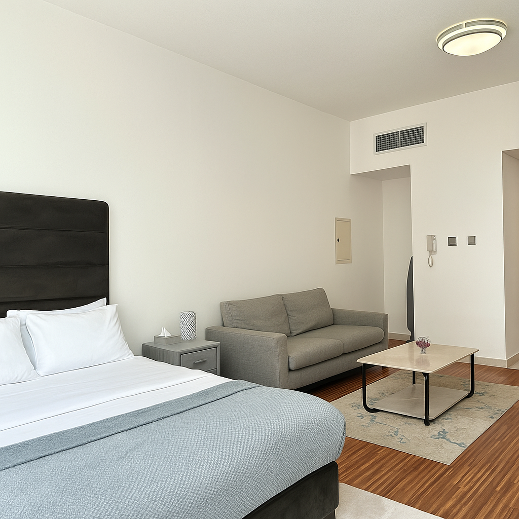**Other Details to Note:** - **Location:** Our studio apartment is located in the heart of JVC, a vibrant and peaceful community offering easy access to major attractions in Dubai, such as Mall of the Emirates, Dubai Marina, and JBR Beach. It's a perfect spot for both short-term and long-term stays. - **Parking:** Free parking is available on-site. You’ll have a dedicated parking spot, so no worries about finding a place to park. - **Public Transport:** The apartment is well-connected with public transportation. The JVC area is serviced by bus routes, and the nearest metro station (Dubai Internet City) is just a short drive away, making it easy to explore the city. - **Building Amenities:** The building features a swimming pool, a well-equipped gym, and 24/7 security for your safety and convenience. - **WiFi & Entertainment:** High-speed WiFi is provided, along with a smart TV equipped with streaming services for your entertainment. - **Air Conditioning:** The apartment is fully air-conditioned to keep you comfortable, no matter the weather outside. - **Quiet Hours:** Please be mindful of noise after 10 PM, as JVC is a residential neighborhood, and we want to respect all neighbors. - **Check-In/Check-Out:** Standard check-in time is after 3 PM, and check-out is by 11 AM. Early check-in or late check-out can be arranged based on availability, but please confirm with us in advance. - **Safety:** The apartment is fully equipped with smoke detectors, a first-aid kit, and a fire extinguisher for your peace of mind. - **House Rules:** No parties, pets, or smoking are allowed inside the apartment. Kindly respect the property and neighbors during your stay. Disclaimer: This property is professionally managed by Malinstay Homes Rental LLC, fully licensed under the Dubai Department of Tourism and Commerce Marketing (DTCM) with the permit number "ALB-PAN-UBOAZ". As per DTCM and community regulations, all guests are required to submit a valid Emirates ID or passport copy before check-in. The details will be securely shared only with the DTCM portal and building management for registration and access approval in accordance with UAE laws. Guests are requested to inspect all furniture and amenities upon arrival. Any damages, defects, or maintenance issues should be reported immediately to our team. Failure to report issues at check-in may be considered as acceptance of the property’s condition. Repairs or replacements will be arranged promptly where required. Please note that the property is located in a residential community. Guests are expected to respect neighbors, follow building rules, and comply with all UAE regulations during their stay. Malinstay Homes Rental LLC will not be liable for personal belongings, accidents, or external factors such as building maintenance or community noise beyond our control. We aim to ensure a comfortable and enjoyable experience for all our guests — your cooperation is greatly appreciated.