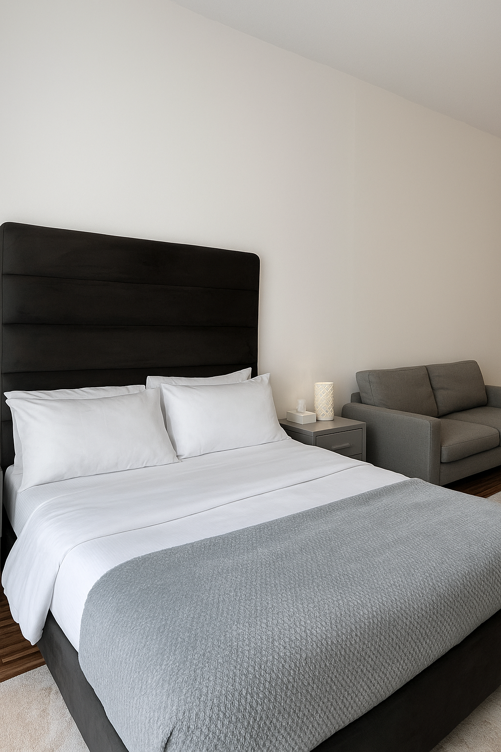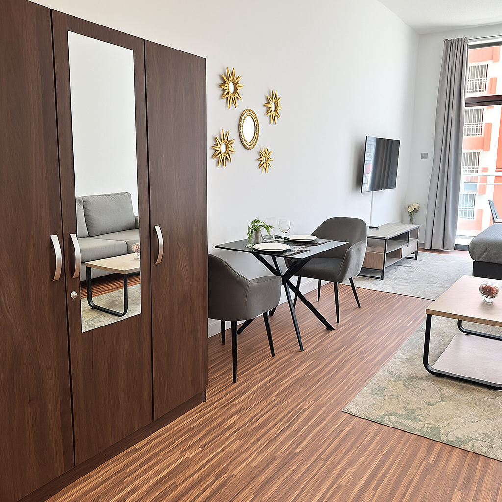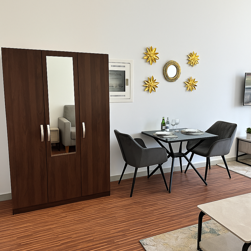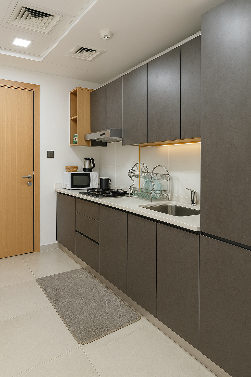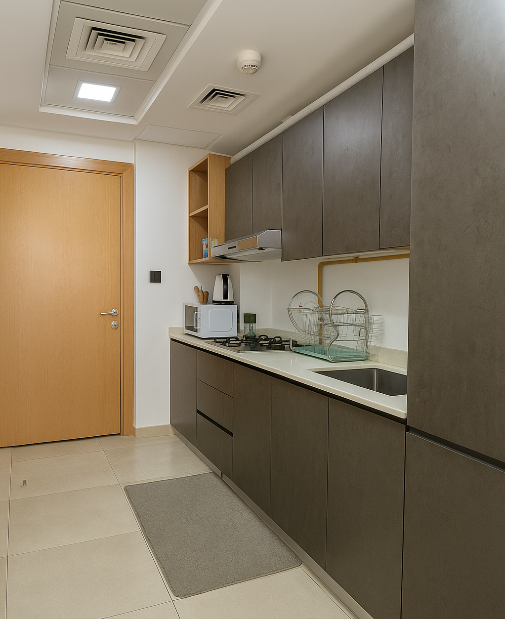 **Other Details to Note:** - **Location:** Our studio apartment is located in the heart of JVC, a vibrant and peaceful community offering easy access to major attractions in Dubai, such as Mall of the Emirates, Dubai Marina, and JBR Beach. It's a perfect spot for both short-term and long-term stays. - **Parking:** Free parking is available on-site. You’ll have a dedicated parking spot, so no worries about finding a place to park. - **Public Transport:** The apartment is well-connected with public transportation. The JVC area is serviced by bus routes, and the nearest metro station (Dubai Internet City) is just a short drive away, making it easy to explore the city. - **Building Amenities:** The building features a swimming pool, a well-equipped gym, and 24/7 security for your safety and convenience. - **WiFi & Entertainment:** High-speed WiFi is provided, along with a smart TV equipped with streaming services for your entertainment. - **Air Conditioning:** The apartment is fully air-conditioned to keep you comfortable, no matter the weather outside. - **Quiet Hours:** Please be mindful of noise after 10 PM, as JVC is a residential neighborhood, and we want to respect all neighbors. - **Check-In/Check-Out:** Standard check-in time is after 3 PM, and check-out is by 11 AM. Early check-in or late check-out can be arranged based on availability, but please confirm with us in advance. - **Safety:** The apartment is fully equipped with smoke detectors, a first-aid kit, and a fire extinguisher for your peace of mind. - **House Rules:** No parties, pets, or smoking are allowed inside the apartment. Kindly respect the property and neighbors during your stay. Disclaimer: This property is professionally managed by Malinstay Homes Rental LLC, fully licensed under the Dubai Department of Tourism and Commerce Marketing (DTCM) with the permit number "ALB-PAN-UBOAZ". As per DTCM and community regulations, all guests are required to submit a valid Emirates ID or passport copy before check-in. The details will be securely shared only with the DTCM portal and building management for registration and access approval in accordance with UAE laws. Guests are requested to inspect all furniture and amenities upon arrival. Any damages, defects, or maintenance issues should be reported immediately to our team. Failure to report issues at check-in may be considered as acceptance of the property’s condition. Repairs or replacements will be arranged promptly where required. Please note that the property is located in a residential community. Guests are expected to respect neighbors, follow building rules, and comply with all UAE regulations during their stay. Malinstay Homes Rental LLC will not be liable for personal belongings, accidents, or external factors such as building maintenance or community noise beyond our control. We aim to ensure a comfortable and enjoyable experience for all our guests — your cooperation is greatly appreciated.