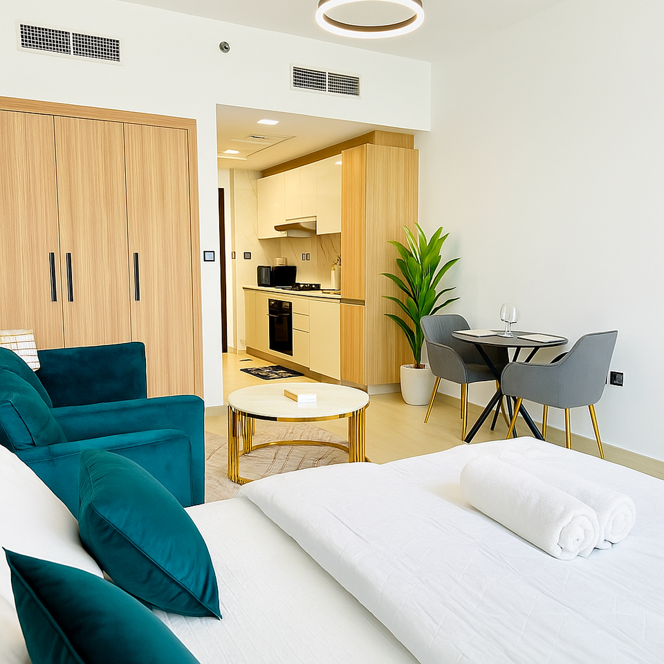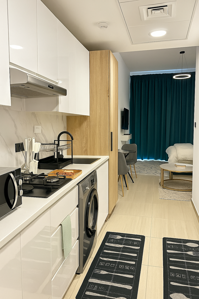 This is a Studio apartment located in Jumeirah Village Circle (JVC) in Dubai city. According to the report of 'Bayut's Annual Dubai Real Estate Market Report of 2019', this is the family friendly neighborhood in Dubai. Also this is one of the most popular communities to live in. It is located near Dubai Marina, Dubai Internet city and JLT. In this apartment, you'll have all the modern living amenities. Full kitchen appliances and cloth washing facilities, you'll get here. There is a list of kitchen appliances in the apartment: Cooking ware set(Non Stick). Wine Glass. Normal Glass. Mug set. Coffee Mug set. Plate set. Spoon set for eating. Spoon Set for Cooking. Toaster. Coffee Maker. Sandwich maker. Blender. Electronic Kettle. Electronic Oven. Oven proof Bowl. Ovenware pan set(3). Oven Gloves. Cooking on a gas burner. -------------------------------------- There is a list of Others home appliances: Multi functional washing machine. Iron. Iron Stand. Cloth Stand etc. ----------------------------------------- Toilet accessories: Hair dryer Bath Towel(2 PC) Face Towel(2PC) Hand Towel(2 pc) Shampoo (on Checking) Conditioner(on Checking) Lotion(on Checking) Soap(on Checking) Oral kit(on Checking) ------------------------------------------- ⚠️ Disclaimer This property is professionally managed by Malinstay Homes Rental LLC, fully licensed under the Dubai Department of Tourism and Commerce Marketing (DTCM). As per DTCM and community regulations, all guests are required to submit a valid Emirates ID or passport copy before check-in. The details will be securely shared only with the DTCM portal and building management for registration and access approval in accordance with UAE laws. Guests are requested to inspect all furniture and amenities upon arrival. Any damages, defects, or maintenance issues should be reported immediately to our team. Failure to report issues at check-in may be considered as acceptance of the property’s condition. Repairs or replacements will be arranged promptly where required. Please note that the property is located in a residential community. Guests are expected to respect neighbors, follow building rules, and comply with all UAE regulations during their stay. Malinstay Homes Rental LLC will not be liable for personal belongings, accidents, or external factors such as building maintenance or community noise beyond our control. We aim to ensure a comfortable and enjoyable experience for all our guests — your cooperation is greatly appreciated.